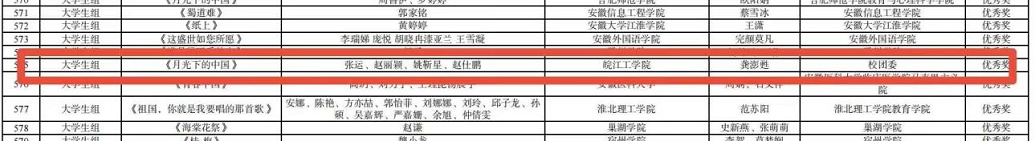 “诵读中国”经典诵读大赛中,龚澎甦老师指导,张运、姚靳星、赵丽颖、赵仕鹏四位同学朗诵的作品《月光下的中国》荣获大学组优秀奖。