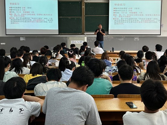 各专业教研室主任对实习期间的注意事项、实习报告的撰写、实习成绩的评定等事项进行了详细讲解,强调了毕业实习的重要性和考核要求,希望同学们能够以积极的态度和严谨的作风面对实习,充分利用这一机会提升自己。