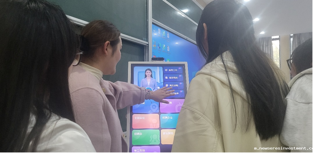 在讲座的互动与交流环节,红海公司同行的工作人员引导在场同学上台实际体验“AI交互机”的强大功能,现场气氛活跃,激发了学生强烈的好奇心与探究欲。由集团自主研发的“AI交互机”是红海公司目前最新的创新成果之一,其核心特色包括了AI语音简历撰写与诊断、模拟面试指导、语音交互精准匹配岗位等功能,属于一站式智能求职终端设备。