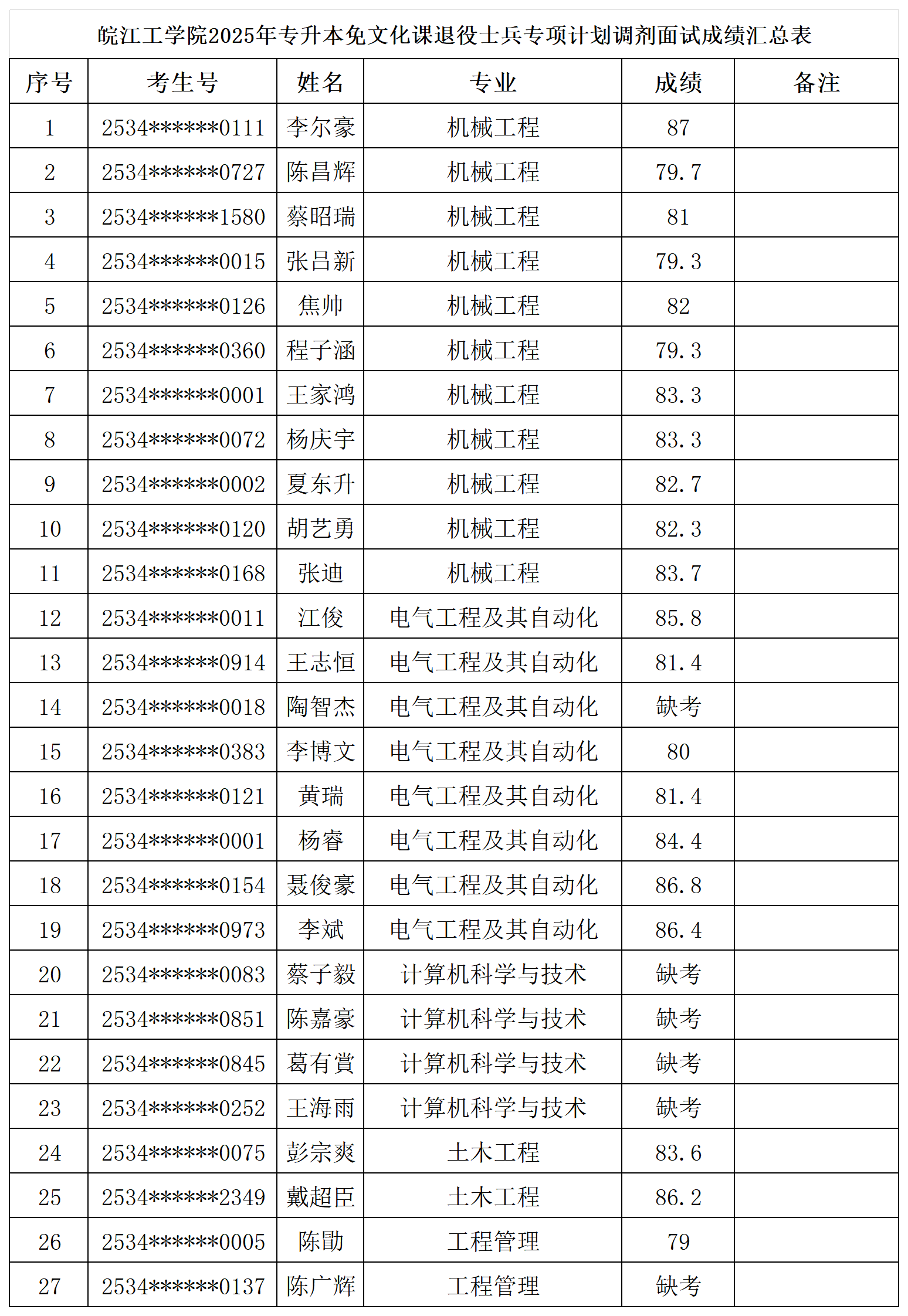 华体汇apk2025年普通高校专升本免文化课退役士兵专项计划调剂面试成绩公示